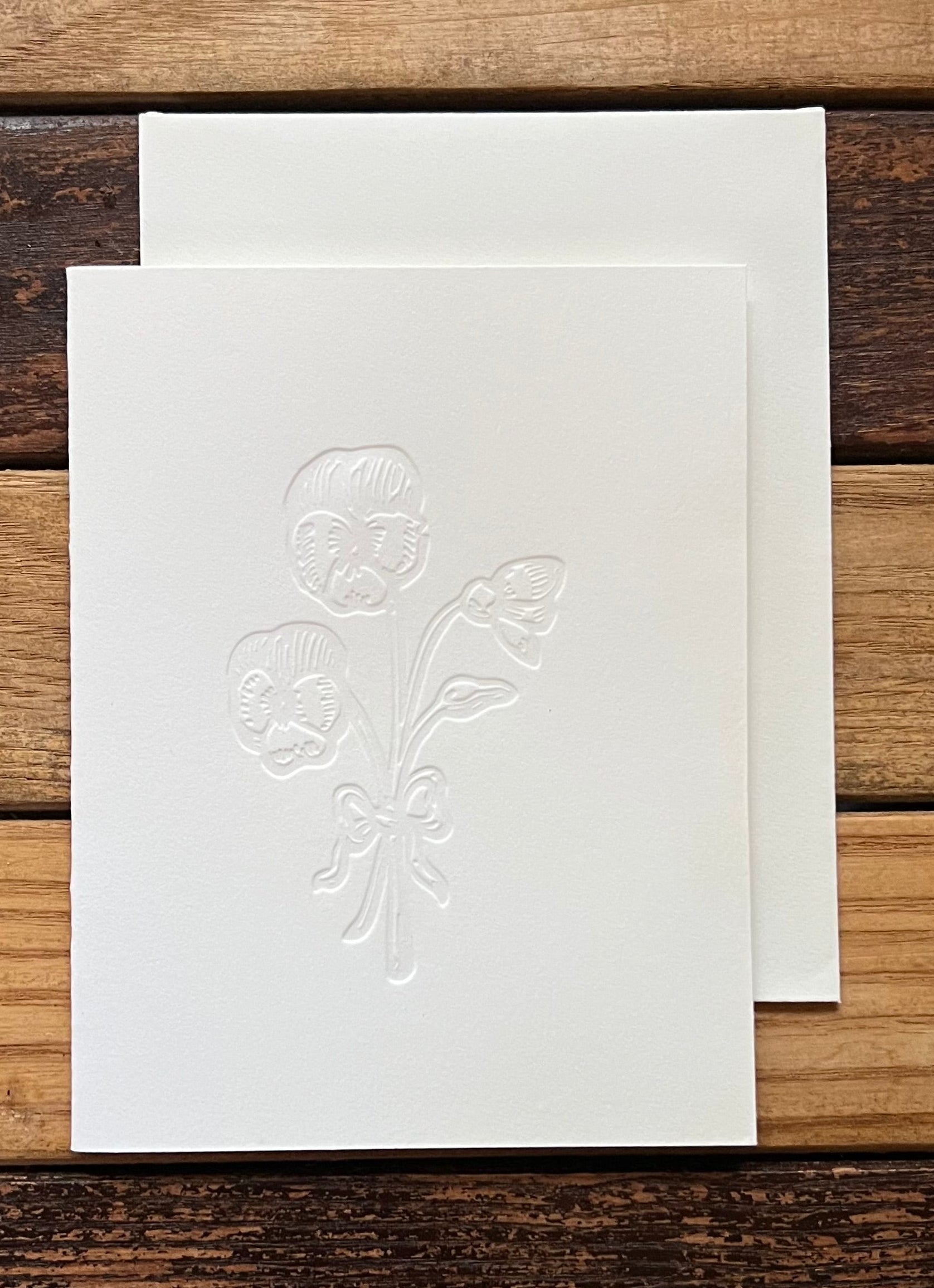 A2 letterpress card on Crane Letta cotton paper. Matching envelope included